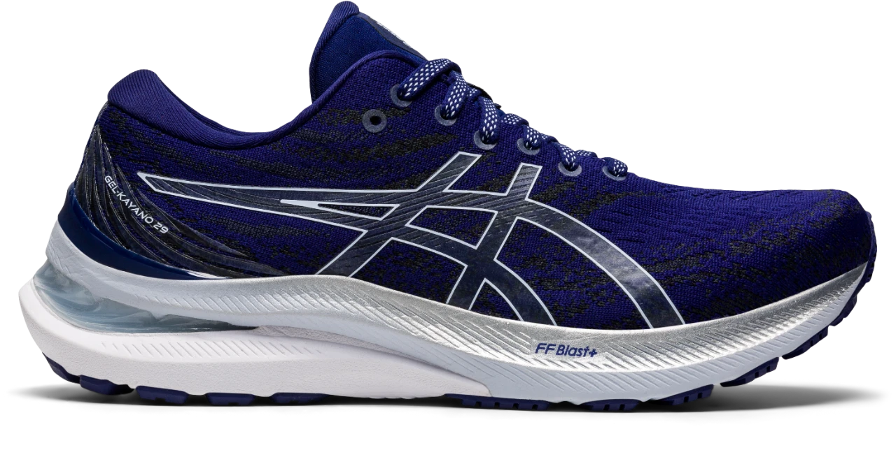The GEL-KAYANOÂź 29 shoe creates a stable running experience and a more responsive feel underfoot. Featuring a low-profile external heel counter, this piece comfortably cradles your foot with advanced rearfoot support. We also updated the midsole with FF BLASTâą PLUS cushioning. This helps keep the shoe lightweight while creating a more energized rebound in each step. A LITETRUSSâą stability feature is placed on the midsoleâs inside angle. Itâs designed to help keep your foot from rolling too far inward during your stride.